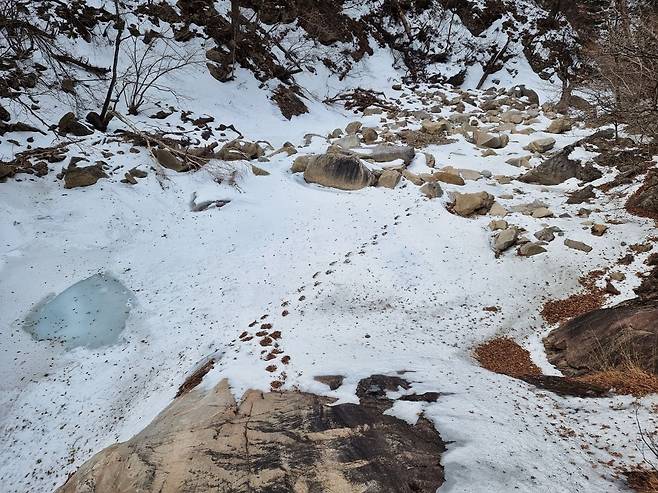 계곡 눈길위에 난 누군가의 발자국2
