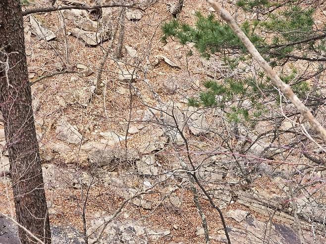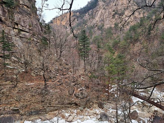 연화담 데크길 반대편 계곡사면에 보이는 등로(?)