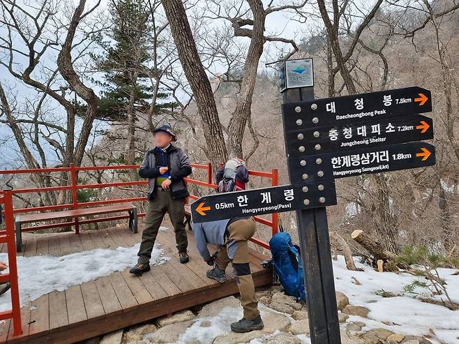 5월 중순까지 기나긴 봄철 산불통제기간에 들어가기전 한계령에서 시작해서 중청까지 이어지는 서북능선으로 올라 대피소에서 하룻밤을 묵고 백담사 방향으로 하산했습니다.