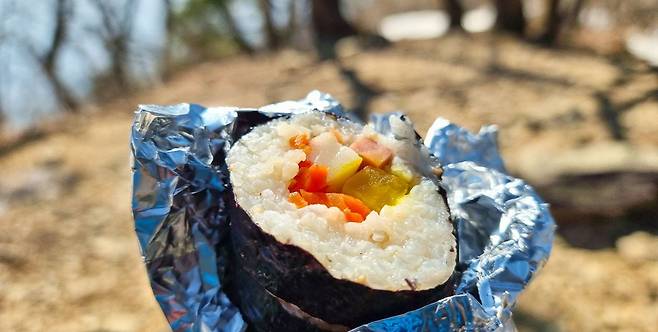 중간에 쉬면서 먹는 김밥, 원통터미널 근처에서 구입. 최근 몇 년간 가격변동 없고 밥양이 많을 걸 보니 등산하면서 힘 내라고 탄수화물 섭취에도 신경을 써주셨습니다