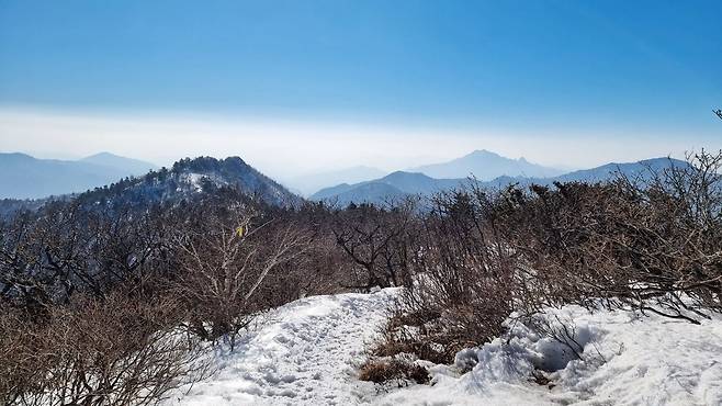 지난 겨울시즌에는 하루인가 이틀만 열렸었고 이번에는 설 쯤에 내렸던 폭설로 인해 통제가 길어지다가 지난달 20일에 통제가 풀렸습니다. 서쪽에서 불어오는 바람과 높은 기온으로 대기질 상태는 나쁨이 예상되었지만 23년 11월 이후에 처음 가보는 서북능선이라 큰 문제는 되지 않았습니다.