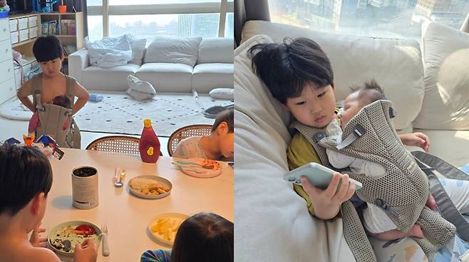 이를 본 누리꾼은 "조상님들은 이런 식으로 여러 아이를 키웠나 보다", "애 많이 낳으면 애가 애를 키운다는 말이 맞다", "둘째 아들이 고생이 많다", "벌써부터 내리사랑이라니 엄마는 든든하겠다" 등의 댓글을 남겼다.