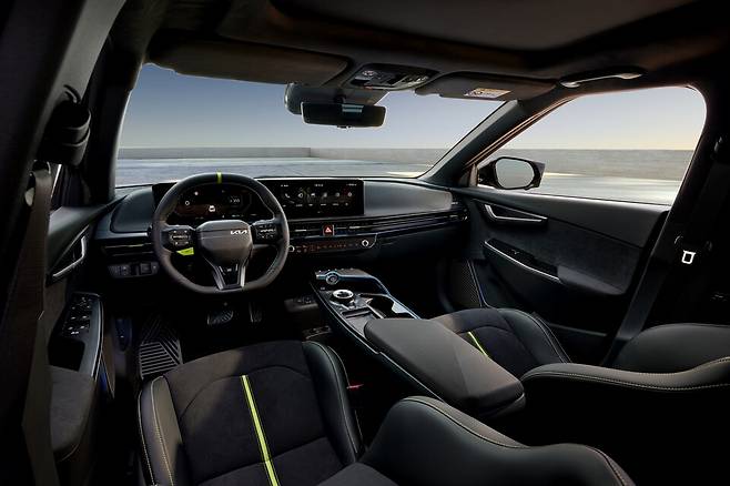 실내 역시 스티어링 휠과 버킷 시트, 송풍구 등 곳곳에 GT 모델의 상징인 연두색 포인트를 적용해 스포티한 이미지를 완성했다.
