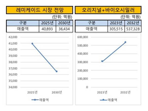 실제로 레미케이드와 바이오시밀러를 포함한 전체 인플릭시맙 시장 규모는 훨씬 크다. 시장조사 업체 와이즈가이리포트는 오리지널 의약품과 바이오시밀러를 합산한 글로벌 인플릭시맙 시장이 2023년 219억7000만달러(약 30조5515억원)에 달했으며, 2032년에는 386억4000만달러(약 53조7328억원)까지 성장할 것으로 예측했다. 같은 기간 CAGR은 6.48%로 단일품목이 아닌 계열 의약품 기준으로는 여전히 고성장이 기대된다.
