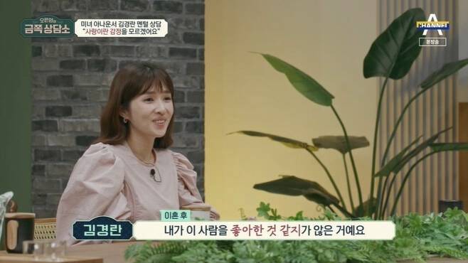 이혼 후 김경란은 SBS '돌싱포맨', 유튜브 '만신포차' 등에 출연해 솔직한 속마음을 털어놓았다.