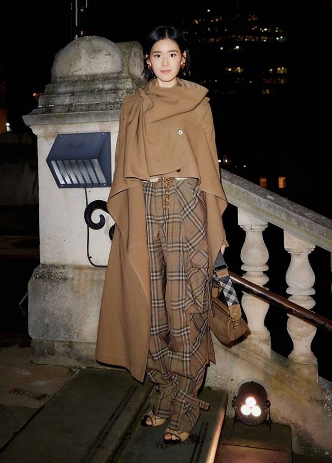 배우 정은채가 런던패션위크 패션쇼에서 실험적인 트렌치 코트룩으로 눈부신 미모를 빛냈다.