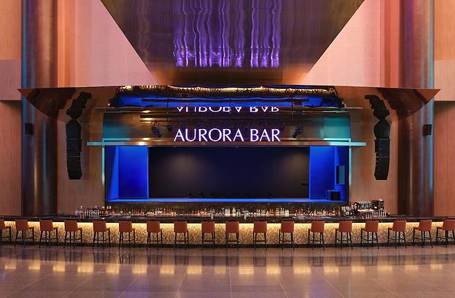 오로라 바는 북유럽의 오로라처럼 아름다운 조명과 환상적인 분위기를 제공하는 바입니다. 다양한 칵테일과 안주를 즐길 수 있으며, LED 스크린을 통해 라스베가스를 연상시키는 화려한 영상도 감상할 수 있습니다.