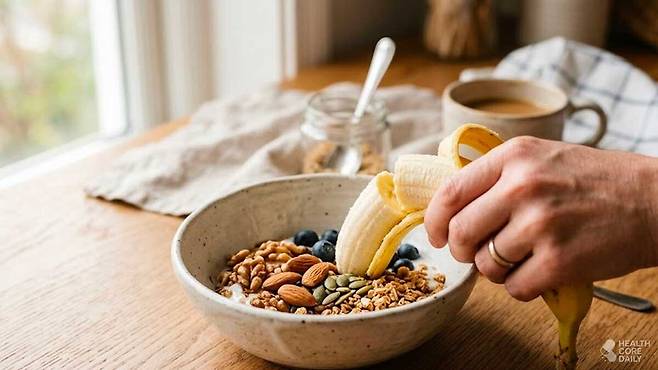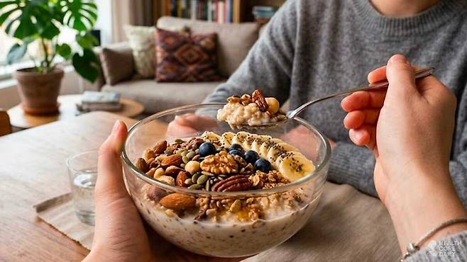귀리를 물이나 우유에 불려서 먹는 오트밀은 준비가 간단하고 아침에 따로 많은 시간을 들이지 않아도 된다는 점에서 실천하기 쉬운 편이다. 바나나를 잘라서 함께 올리거나 견과류를 조금 얹으면 더 다양하게 먹을 수 있다.