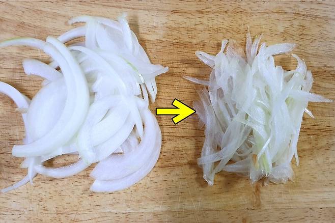 그러면 위의 사진처럼 양파가 정말 얇게 채 썰어진답니다.