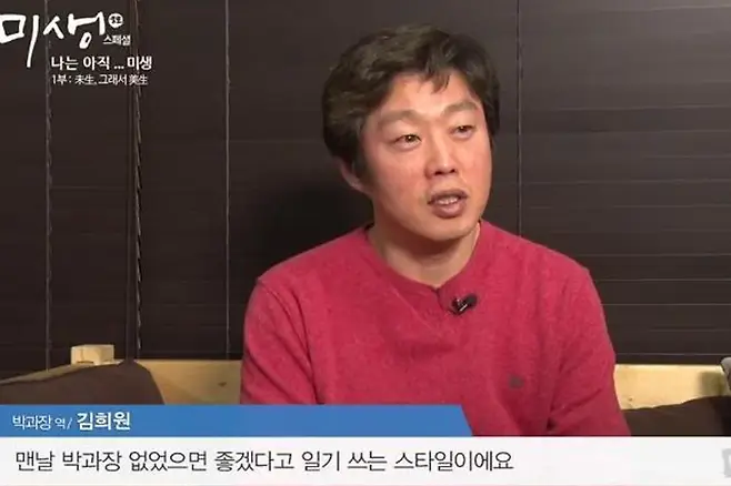이런 무명 시절을 견딘 김희원은 영화 ‘아저씨’에서 만석 역으로 활약해 악역으로 대중에게 얼굴을 알렸다. 이후 ‘미생’에서도 악역인 박 과장 역을 맡으며 ‘악역 연기 장인’이라는 타이틀을 얻게 된다.