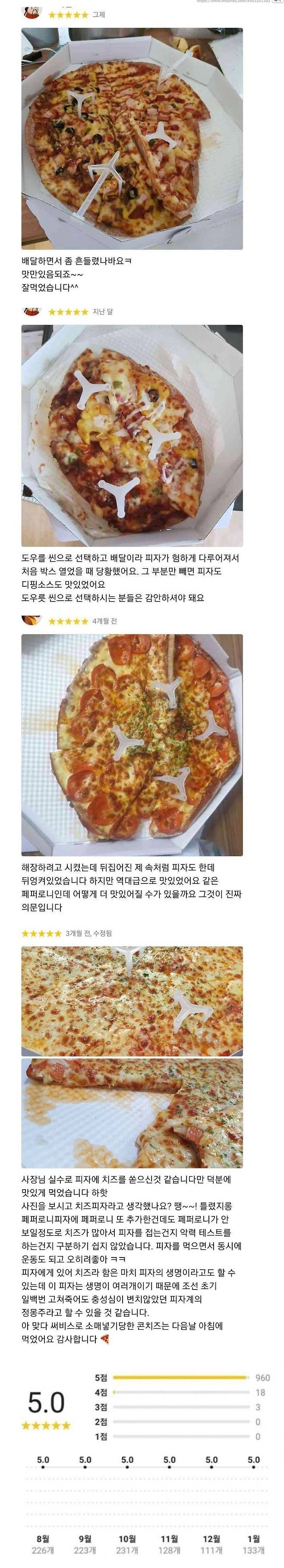배달 상태 개판인데 평점 5점 유지 중인 피자집