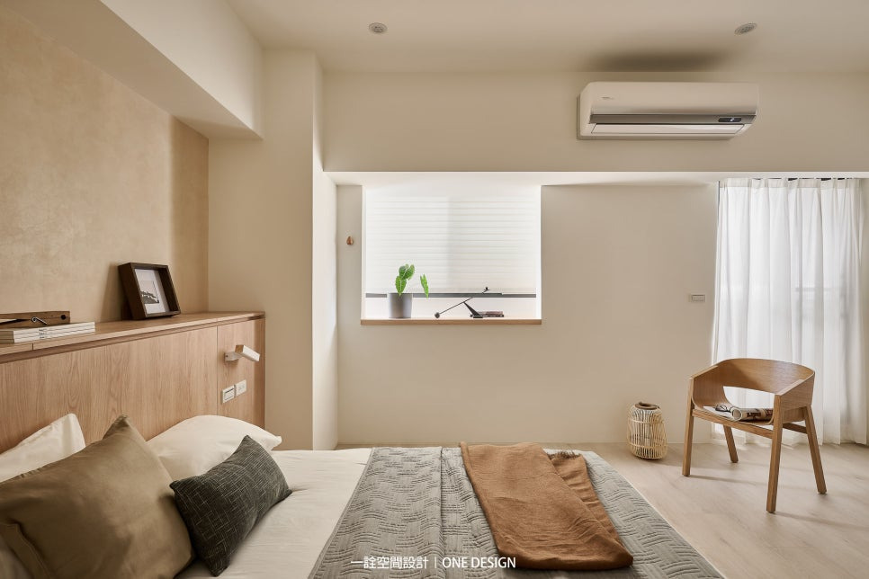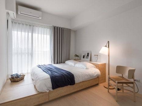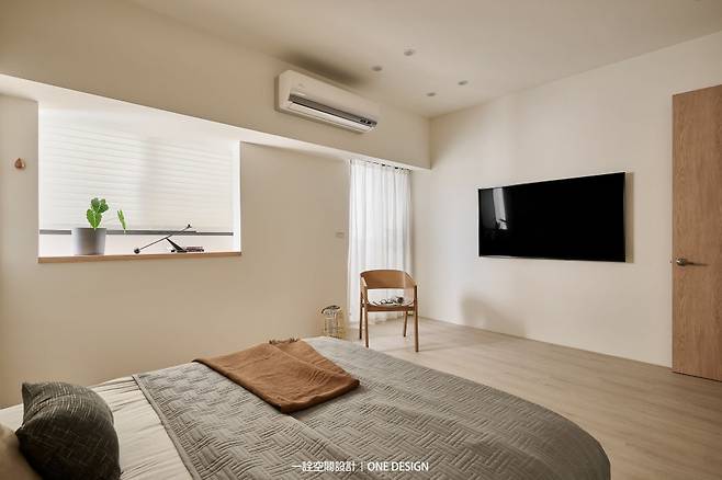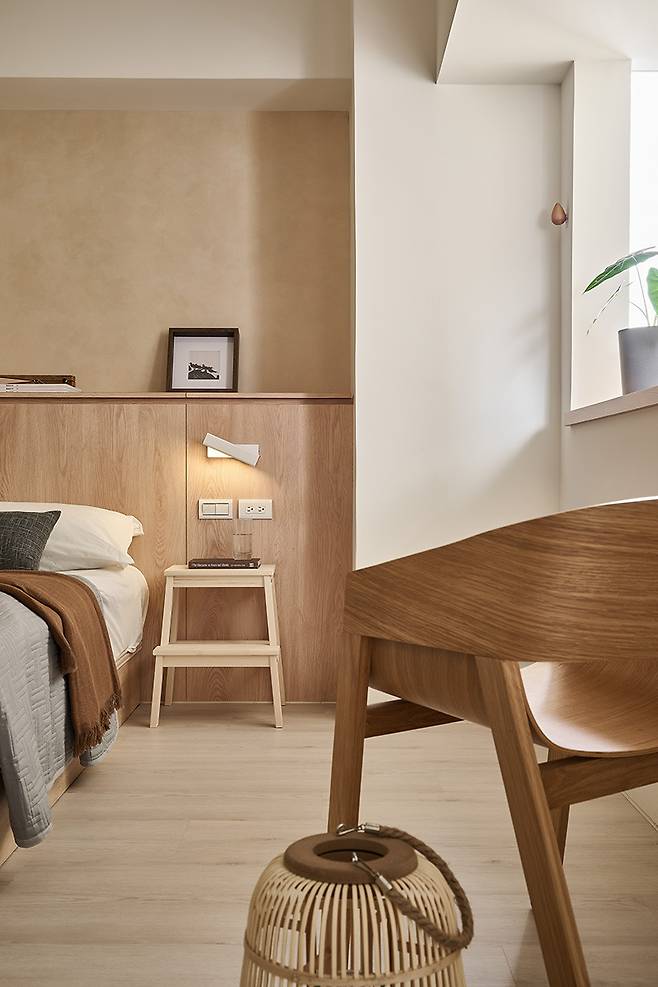 잠자리와 체어, 소형 사이드테이블만을 설치해 가구의 점유율을 낮추고, 대신 채광과 공기 순환을 위한 공간을 충분히 확보했습니다.