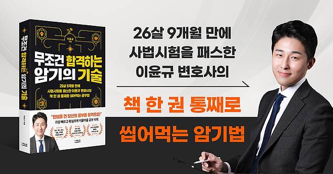 9개월 만에 단번에 사법시험에 합격할 수 있었던 결정적 방법을 묻는다면 이렇게 답할 것이다. ‘암기의 기술’이 있다고. 아무리 머리가 좋고 공부 재능이 있어도 제대로 된 방법을 모르면 암기를 잘할 수 없으며, 반대로 제대로 된 방법만 알면 누구나 책 한 권을 통째로 사진처럼 기억할 수 있을 만큼 암기를 잘할 수 있게 된다고.