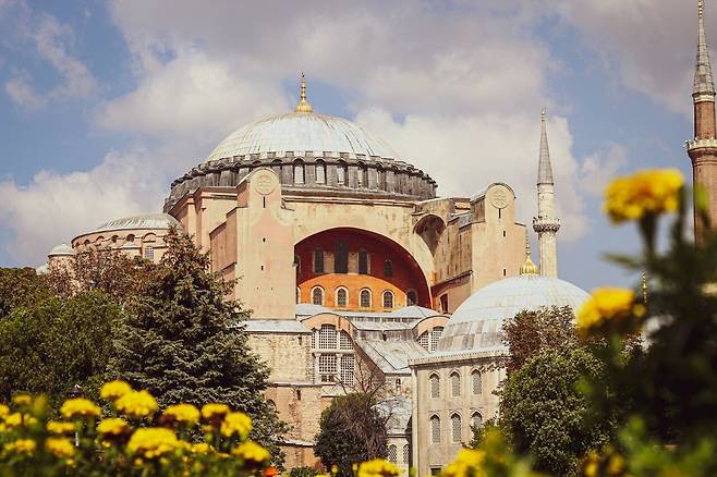 이스탄불에 위치한 성 소피아 성당은 비잔틴 제국과 오스만 제국의 흔적이 공존하는 건축물입니다.
