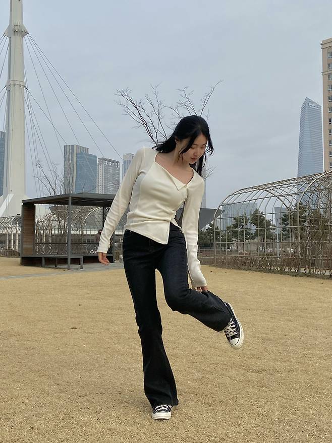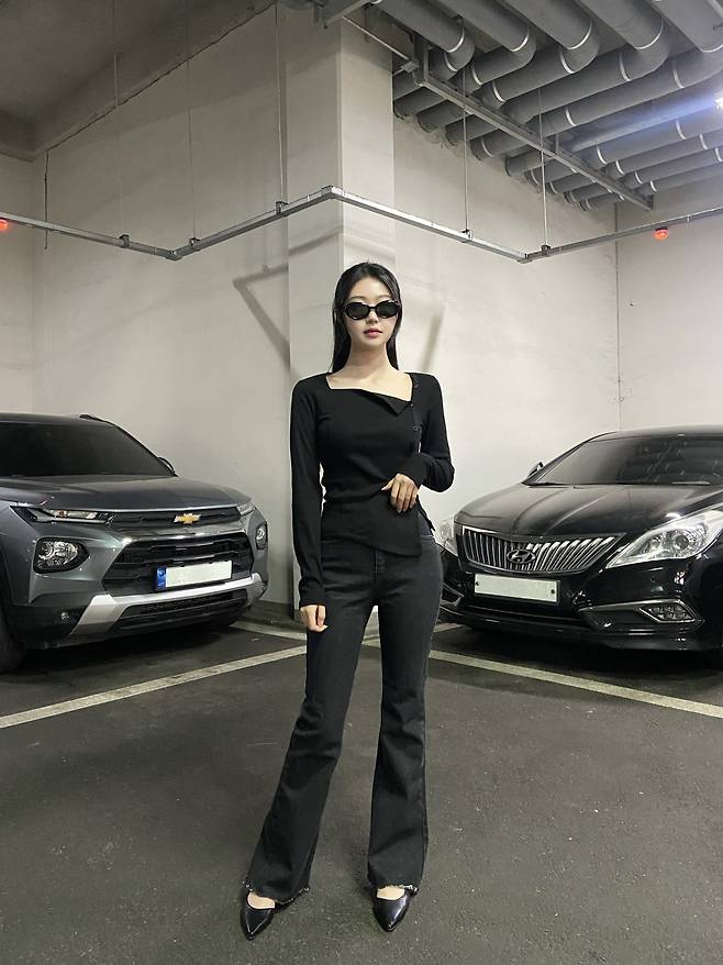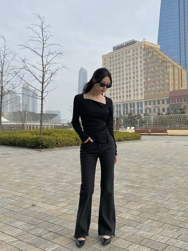 블랙 세미 부츠컷으로 시크한 분위기 연출해주며 ~