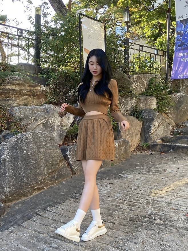 적당한 치마 길이의 플리츠 라인으로 활동감 업!