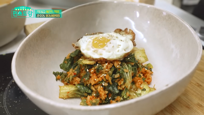 김대호는 MBC 퇴사 후 〈나 혼자 산다〉에서 봄동 비빔밥 레시피를 선보였씁니다. 부지런한 하루를 보낸 뒤 집에 돌아와 차려먹은 것이 봄 제철 특식인 봄동 비빔밥이었죠. 그는 익숙하다는 듯 각종 양념을 꺼내 뚝딱 봄동 겉절이를 만들었는데요. 봄동 외 각종 나물류 반찬을 쏟아 넣은 후 마지막에는 달래 꼬막장을 넣어 완성했죠. 김대호의 봄동 겉절이는 완벽했지만, 비빔밥의 가장 중요한 재료인 ‘밥’이 없다는 걸 깨닫고 좌절해 웃음을 자아냈는데요. 당시 그는 엉뚱하게도 탄수화물을 단백질로 대체하겠다며 계란 10개를 꺼내 프라이를 해 겉절이 위에 얹었어요. 거기다 참치 통조림까지 까 넣으며 그만의 ‘봄동 비빔밥’을 만들었죠. 경악을 감추지 못하는 패널들과 달리 그는 맛깔나게 양푼을 비웠습니다.