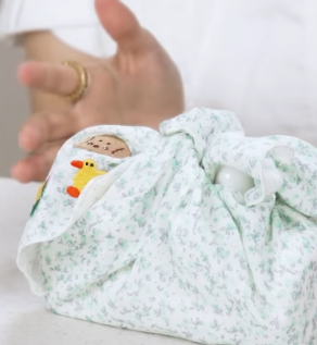 보자기 안에 있는 아이템이 더 신박한데 목이 뭉칠 때 마사지 해줄 수 있는 괄사 아이템을 보자기 안에 넣어다닌다고.
