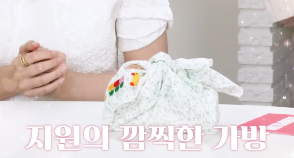 이 가방은 그녀의 친언니가 직접 만든 손수건을 보자기로 만든 것으로 개인 소지품을 여기에 넣어 다닌다고 소개했다. 평소에는 특별히 가방을
