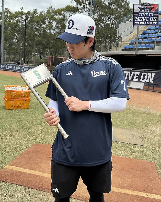 KIA 타이거즈에서 뛰다 지난해 말 자유계약선수(FA)가 되어 두산으로 이적(4년 최대 80억원)한 그는 이달 초 오명진·박지훈·안재석·박치국 등과 일본 오키나와 '미니 훈련 캠프'를 열흘 일정으로 다녀왔다. 이 때문에 25일 1군 선수단 전원과 시작한 훈련에서도 자연스럽게 팀에 녹아들고 있다.