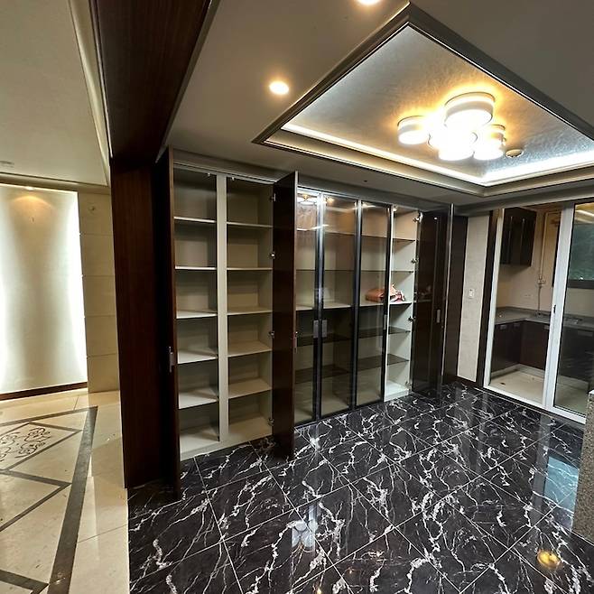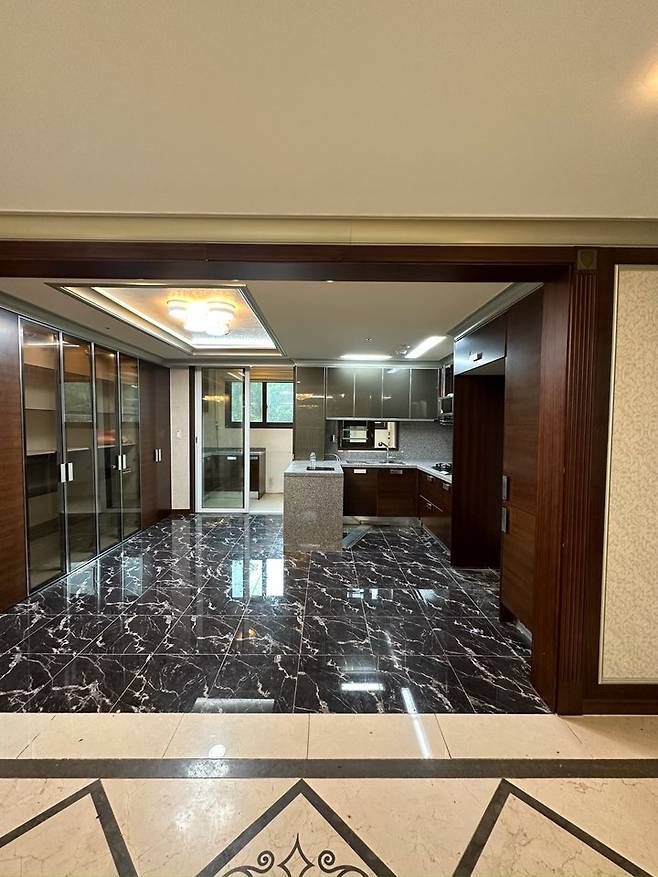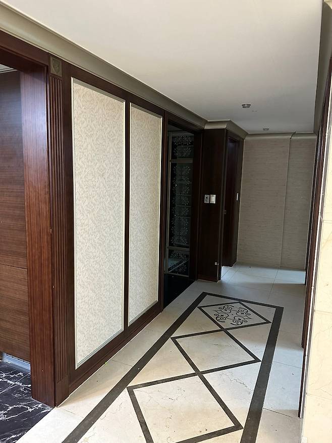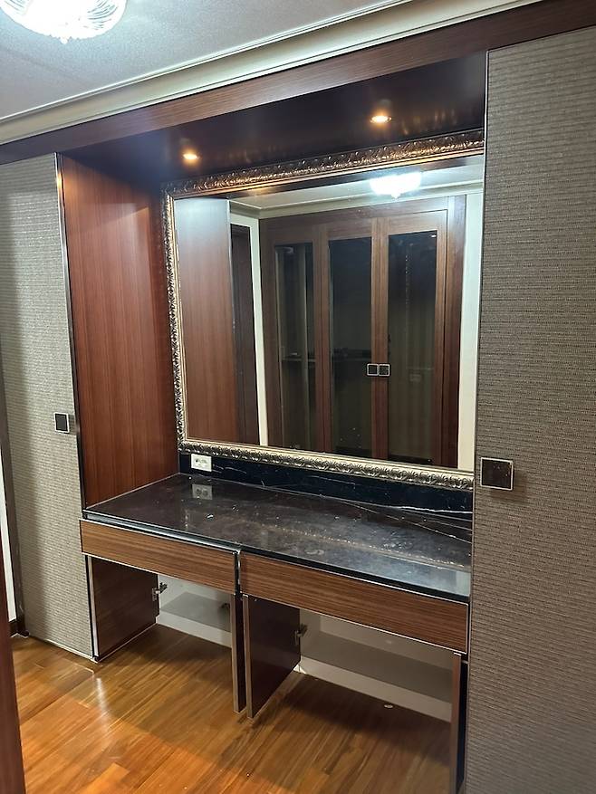사진에는 잘 보이지 않지만 현관에서 들어오면 엄청 큰 거울이 있었어요 수정이 도저히 불가할 정도의 사이즈와 디자인.. 이 집의 충격은 그 거울이었던 것 같아요.