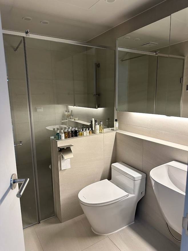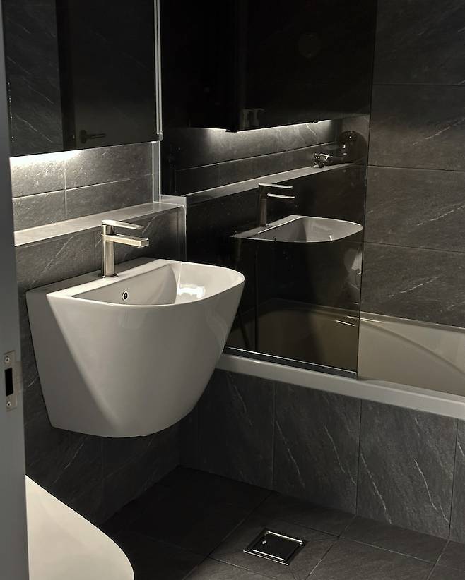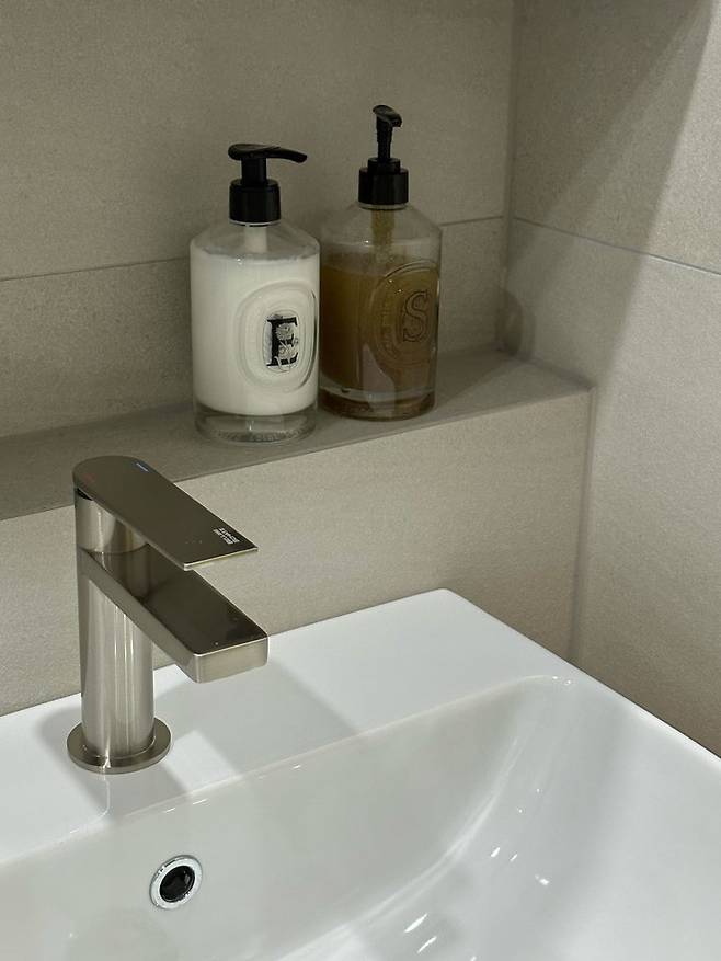 그 외 공간들을 보여드리면 욕실 역시 차분한 톤으로 깔끔하게 시공했어요.