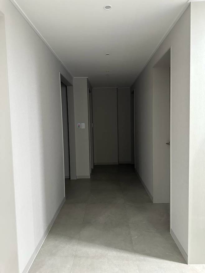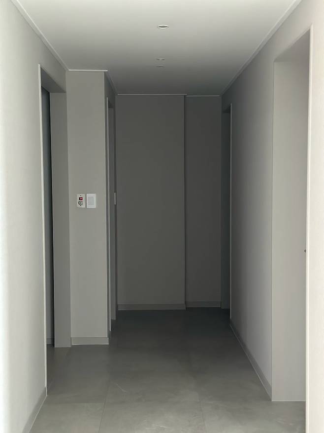 혹시 인터폰이나 보일러를 바꾸실 계획이 있는데 미룰까 고민 중이시라면 이 부분을 생각해보셔야 해요. 저희는 인터폰을 공사 끝나고 교체하는 바람에 뒤에 판을 대고 인터폰을 설치 했어요.