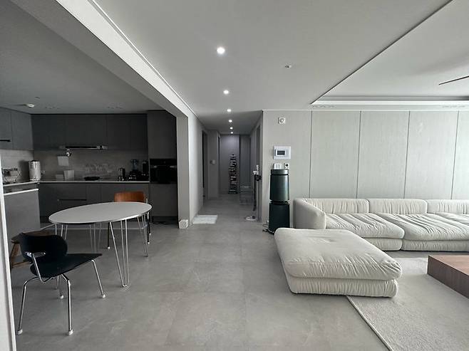 거실이 다른 현장과 다른 점 혹시 느끼신 분 계실까요? 정답은 조명이랍니다! 제가 여러 개 뚫는 걸 선호하지 않아서 조명을 최소한으로 뚫었는데 처음에는 다들 어둡지 않을까 걱정하셨다고 해요.