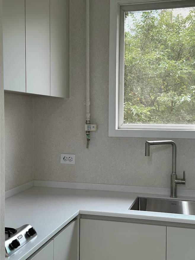 대면형 주방을 만들 시 수전과 분배기, 가스 등 큰 설비 작업들이 필요해서 예산이 많이 올라가더라구요. 그래도 냉장고장과 붙박이 냉장고는 철거해서 조리대가 커지는 것만으로도 너무 기대가 됐어요.