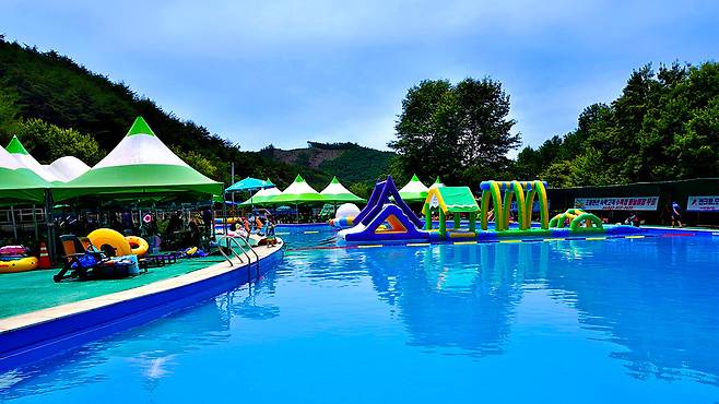 폭포 위쪽에는 아이들이 마음껏 뛰놀 수 있는 ‘수옥정 물놀이장’이 마련돼 있다. 계곡물을 그대로 활용한 이 야외 수영장은 얕은 수심과 맑은 물 덕분에 어린 자녀를 동반한 가족들에게 특히 인기가 많다.