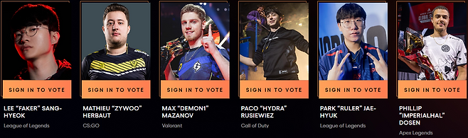 이밖에 베스트e스포츠 선수에 T1 "페이커" 이상혁 선수와 징동 게이밍 "룰러" 박재혁 선수가 후보에 올랐으며 베스트e스포츠 감독에 징동 게이밍 윤성영 감독이 쟁쟁한 e스포츠 감독들과 경쟁한다.
