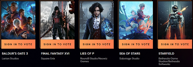 베스트RPG는 말 그대로 올 한해 최고의 롤플레잉 게임에 수여하는 상으로 발더스 게이트3, 파이널 판타지16, 씨오브스타즈, 스타필드이 P의 거짓과 경쟁한다.