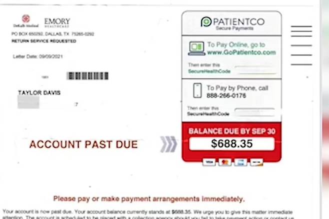 하지만 몇 주 후 데이비스는 688.35달러(약 88만 원)의 병원 청구서를 받았는데요.