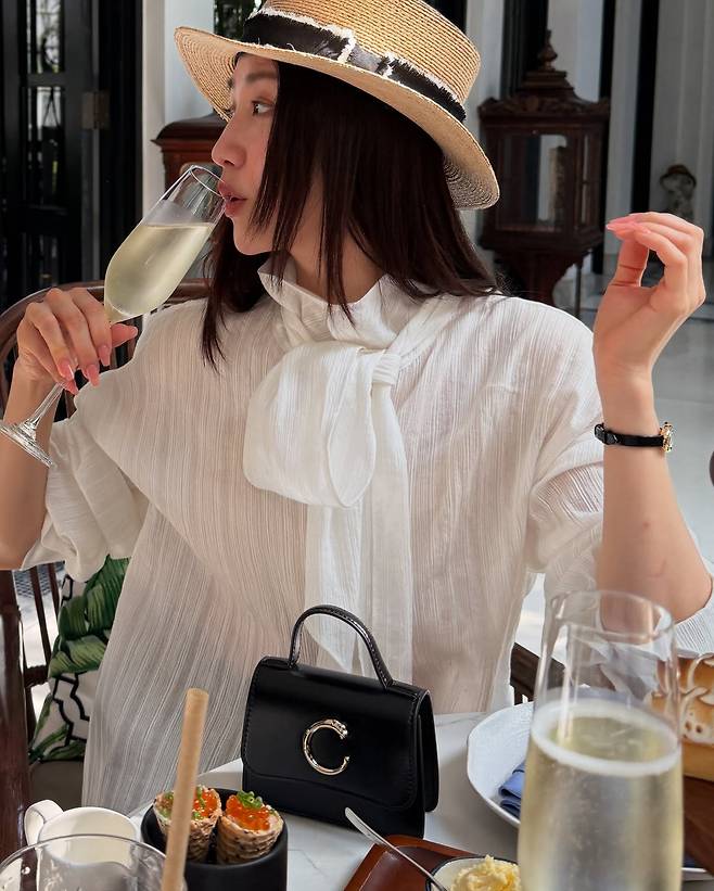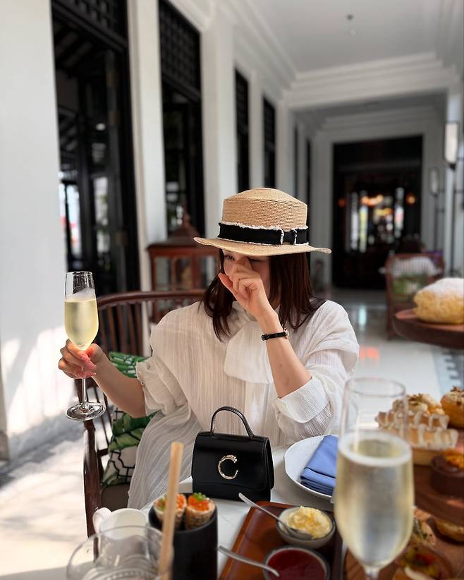 배우 박하선이 최근 본인의 인스타그램에 "방콕 햇살 너무 좋잖아🥹#박행자방콕편🇹🇭#애프터눈티☕️🍰🥂" 라는 글과 함께 여러 장의 사진을 업로드했습니다.