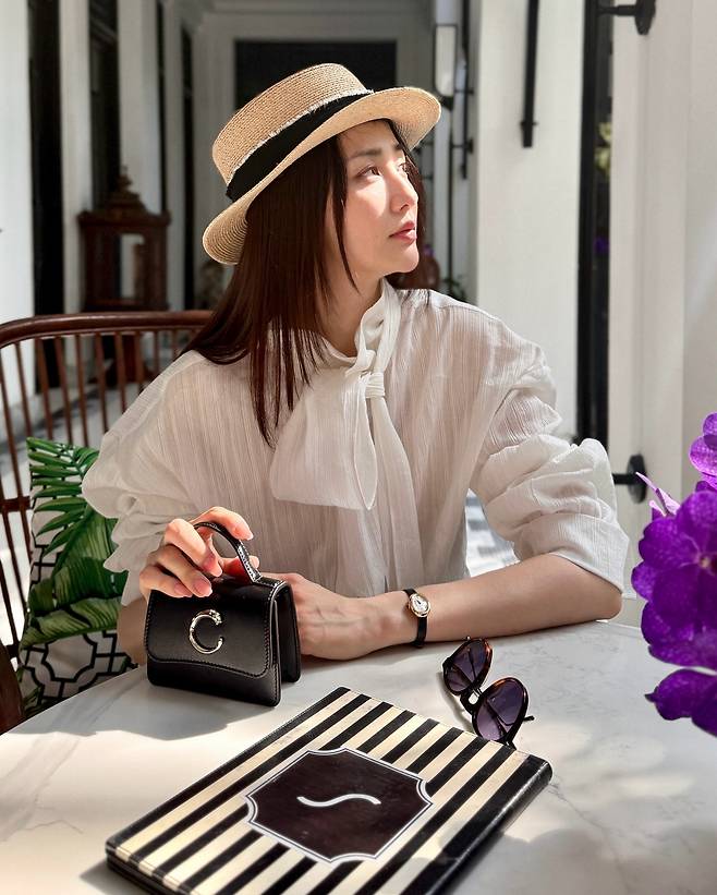 사진 속 박하선은 블랙 숏팬츠에 하늘하늘한 리본 블라우스를 입고 명품 미니백을 매치해 러블리한 코디를 연출했습니다.
