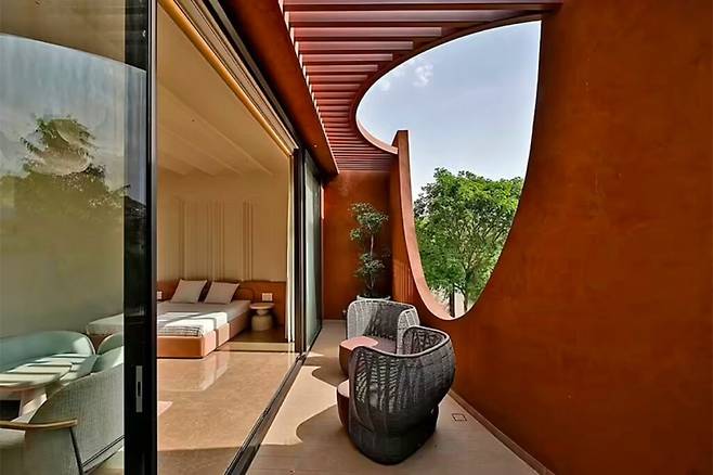 겉으로는 무작위로 휘어진 것처럼 보이지만, 사실 태양의 각도, 바람의 흐름, 사생활 보호까지 세심하게 고려된 설계의 결과다.