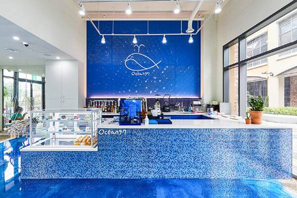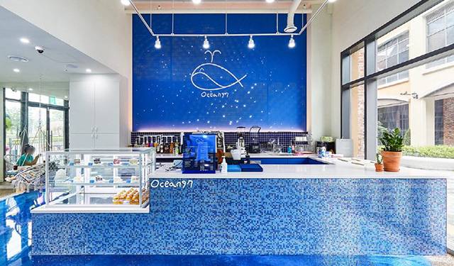 인천 송도의 센트럴파크 근처에는 ‘오션97’이라는 이름의 카페가 위치해 있다. 카페의 전반적인 인테리어를 시원한 푸른색으로 물들인 곳으로, 곳곳에 마치 해변가에서 찍은 듯한 사진을 남길 수 있는 포토존을 갖추고 있다. 카페 이름에 맞춘 ‘오션라떼’, ‘오션에이드’ 등의 메뉴를 둘러보는 재미도 있다. 앉아서 음료를 즐길 수 있는 해먹, 해변의자 같은 디자인을 취하고 있다는 점도 특색으로 꼽을 수 있다.