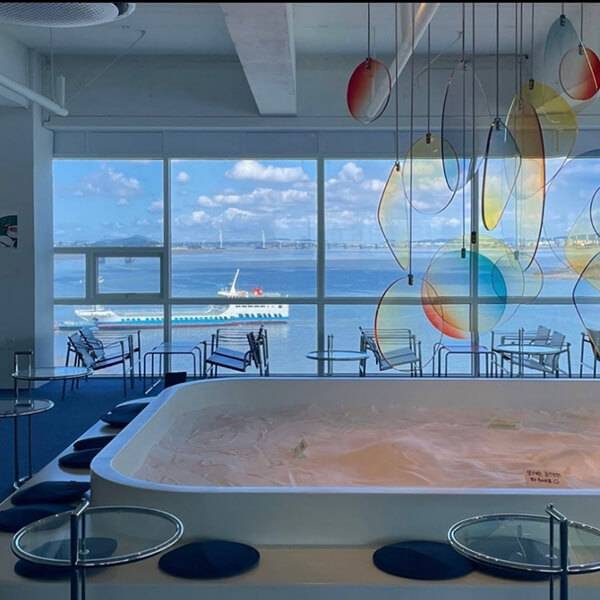 경기도 김포에서는 대명항 맛집으로 통하는 힐링 카페 ‘수산공원’이 유명하다. 멋진 인테리어와 함께 매운탕빵이 유명한 곳으로, 실내 층고가 13m에 달하는 초대형 카페다. 파도가 치는 듯한 바닥 인테리어, 가로세로 10m의 대형 스크린이 설치된 이곳은 ‘바다 항구’라는 차별점을 잘 살린 곳이다. 인기 드라마 ‘이상한 변호사 우영우’에 건물 외관 고래그림이 방영되면서 화제를 모으기도 했던 곳이다.