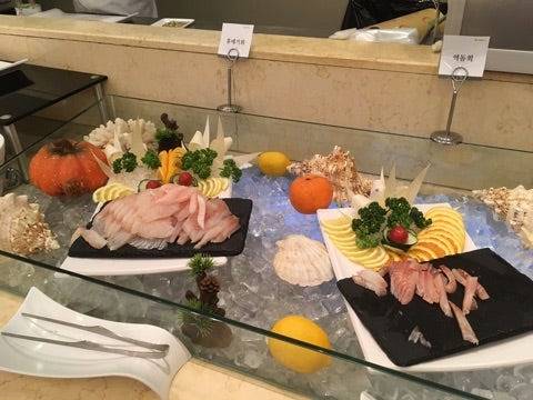 뷔페 식사에서 날조개무침이나 생굴회 같은 해산물은 특히 인기가 많습니다.