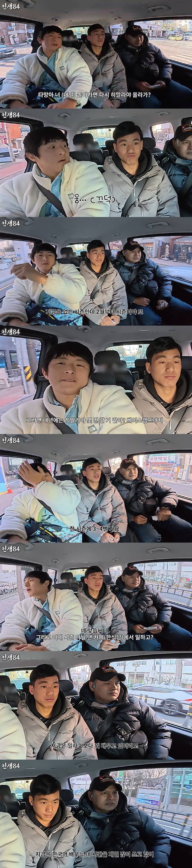 기안84는 이어 "내년에 히말라야 몇 번 갈 거 같아? 베이스캠프까지"라고 물었고, 타망은 "한 시즌에 3~4번 간다"고 말했다. 기안84가 "시즌 아닐 때는 카페에서 일하냐"고 묻자, 검비르는 대신 "맞다. 지금은 일하기보다 배우는 중이다. 가장 시간을 많이 쏟는 건 한국어 공부"라고 설명했다.