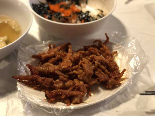 떡볶이로 유명한 신당동 떡볶이 타운 안에 자리한 떡볶이와 닭발 맛집 신당동 '우정'. 떡볶이도 판매하지만 닭발이 더 인기란다. 걸죽한 국물에 잡내 없이 부드러운 식감의 닭발은 매운맛과 순한 맛 두 가지로 맛 선택이 가능하고 섞어서도 가능하다. 또한 이 집의 매력으로 꼽는 것은 바로 다양한 사리. 닭발에도 떡이나 오뎅, 비엔나소세지, 만두, 팽이버섯 등 여러 가지 사리를 추가해 취향에 맞게 다양하게 먹을 수 있다. 평일에도 대체로 웨이팅을 해야 하지만 기다린 보람이 있을 만큼 스트레스가 확 풀리는 매운맛이다.