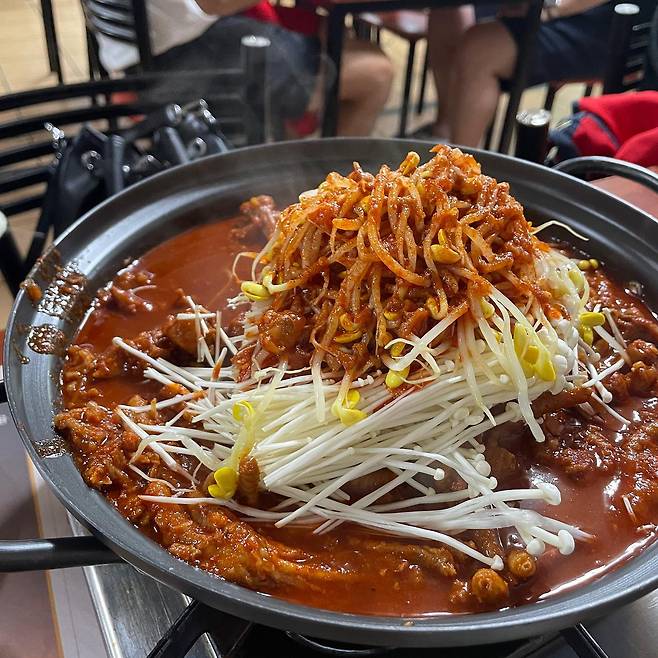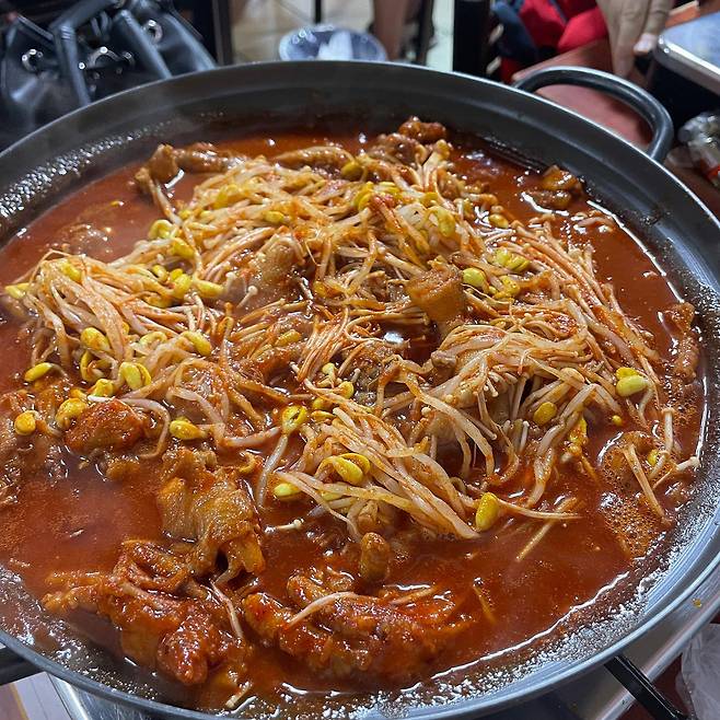 가격: 숙주국물뼈닭발(2인) 28,000원 숯불무뼈불닭발(2인) 24,000원