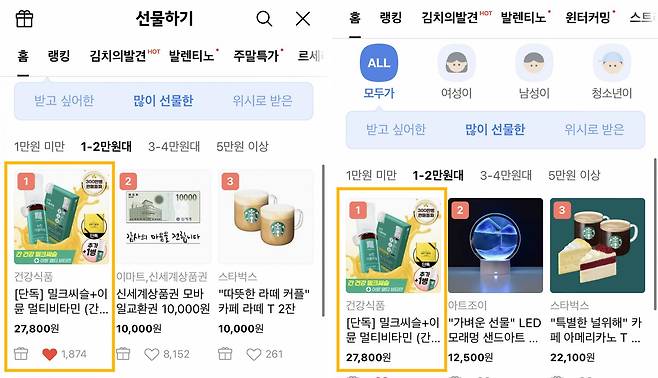 가장 많이 선물한 랭킹 *1위