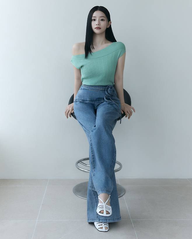 컬러감이 살아있는 원 오프숄터에 데님을 함께 입어줬는데요~ 유행없이 입기도 좋을 룩이라 예쁘더라구요!
