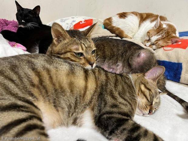 "하루의 착한 심성과 좋은 기운이 다른 고양이들에게 전해졌는지 다들 편안하게 지내고 있다"고 웃으며 말하는 수영 씨. 이어 고양이들에게 "사고 쳐도 좋으니 모두들 그저 건강하기만 해주렴"이라며 애정 어린 마음을 전했다.