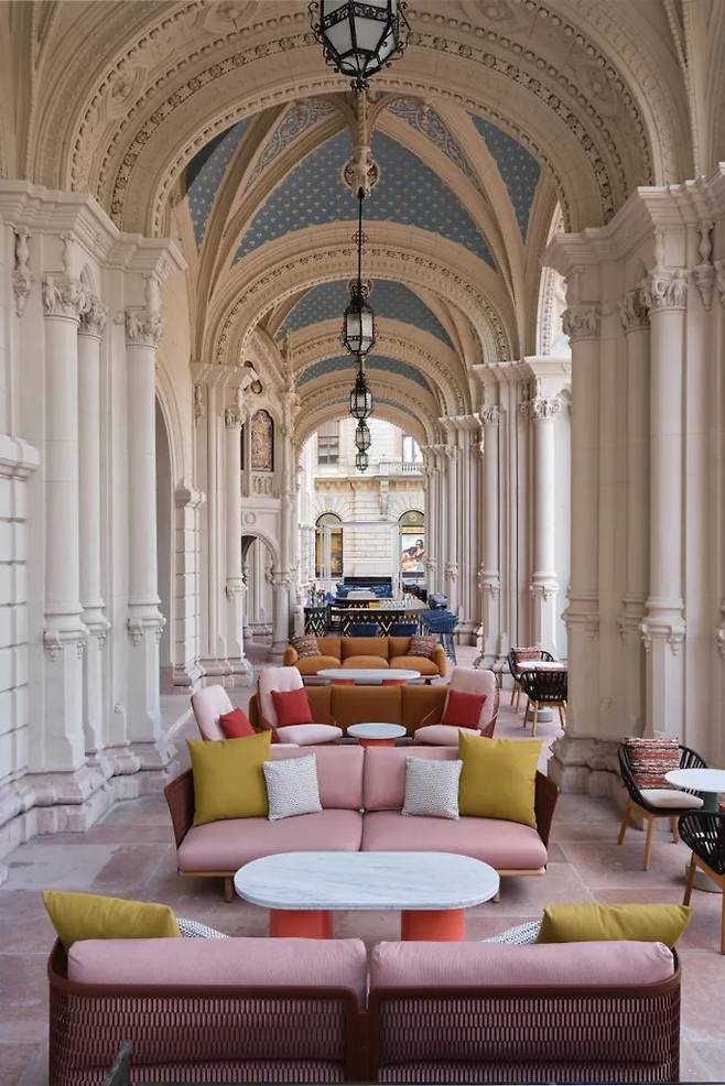 W 부다페스트는 140년의 역사를 가진 드레흐슬러 궁전에 있다. 광범위한 개조를 거친 후 다채로운 색상으로 구성된 공간이 되었다. 오렌지 및 그린 컬러의 보색 구성이 돋보이는 라운지, 파스텔 블루와 핑크 등으로 이뤄진 야외 테라스, 헝가리 전통 오락인 체스의 보드에서 영감을 받은 욕실 등이 그 예다. 궁전 자체의 구조를 바꾸지 않고도 존재감을 드러낸 디자인이다. @wbudapest_hotel