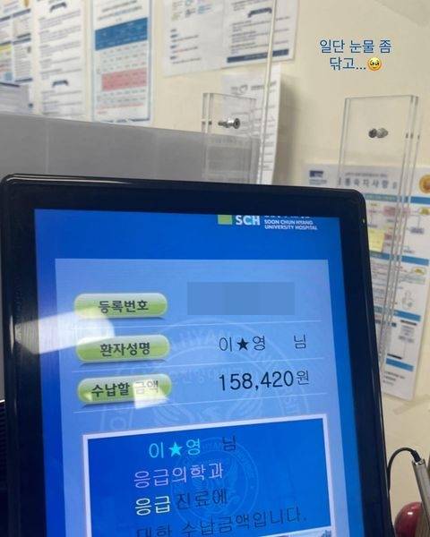 실제로 이아영의 눈은 피멍이 든 것은 물론이고 상당히 부어오른 모습이다. 이아영은 응급진료 수납금액 화면도 찍어 공개했다.