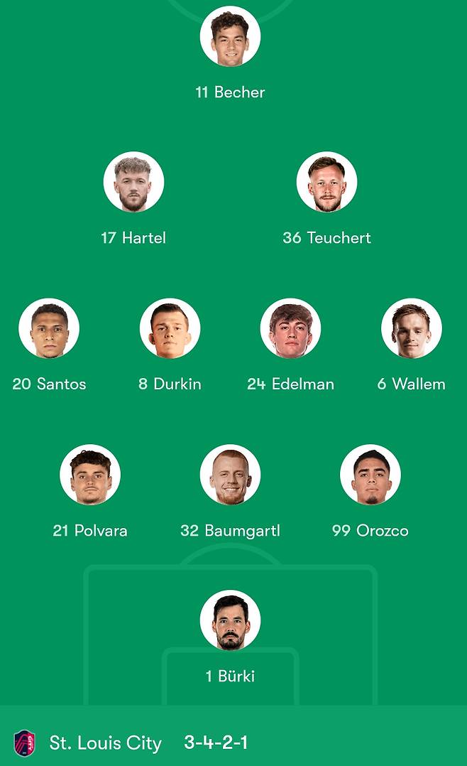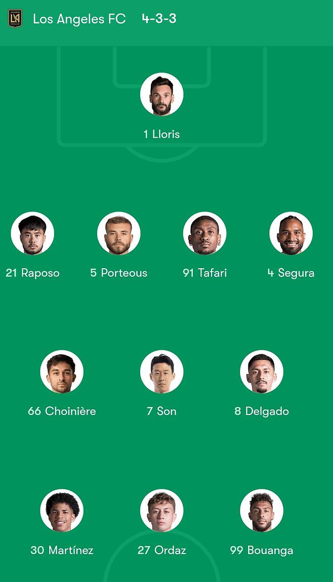 골문은 베테랑 요리스(1)가 지키며, 수비진은 라포소(21)-포티어스(5)-타파리(91)-세구라(4)로 구성된 4백이 나선다. 중원에서는 손흥민(7)을 중심으로 쇼니에르(66)와 델가도(8)가 호흡을 맞춘다. 전방에서는 마르티네스(30)-오르다즈(27)-부앙가(99) 트리오가 세인트루이스의 골문을 겨냥한다.