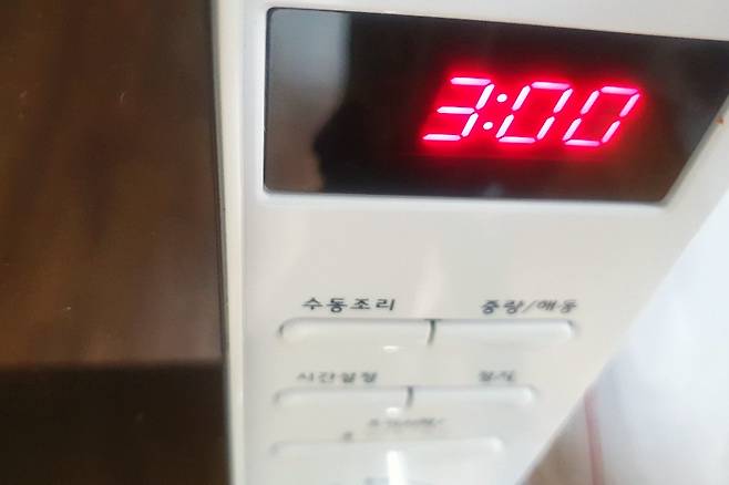 반죽 윗면을 평평하게 편 뒤 랩을 씌워 구멍 2군데 뚫어주고요 전자레인지에 약 6-7분 돌려주시면 끝입니다.