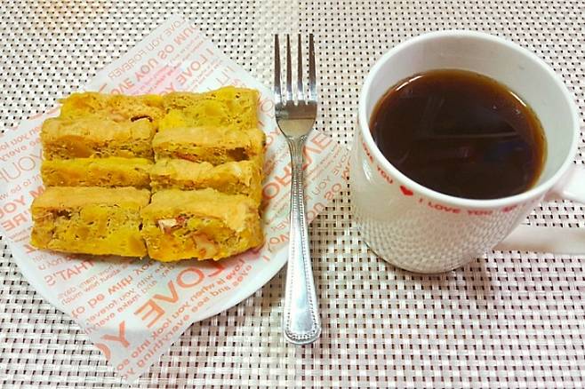 밀가루 1도 업는 건강한 전자레인지 고구마빵 완성입니다. 아메리카노와 함께 먹으면 너무 잘 어울립니다.